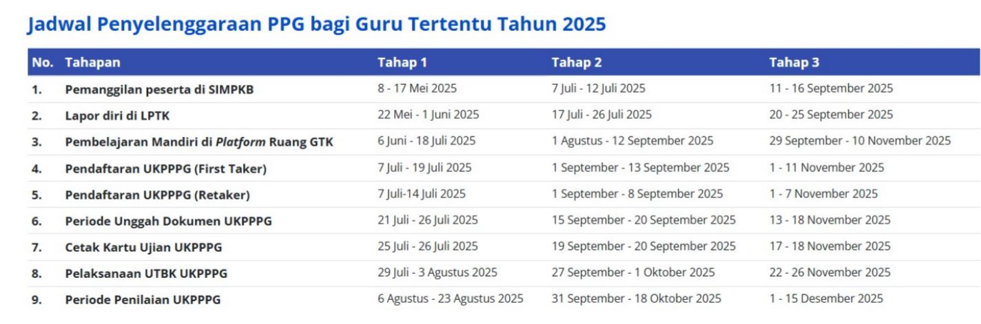 JADWAL PENYELENGGARAAN PPG BAGI GURU TERTENTU TAHAP 3 TAHUN 2025